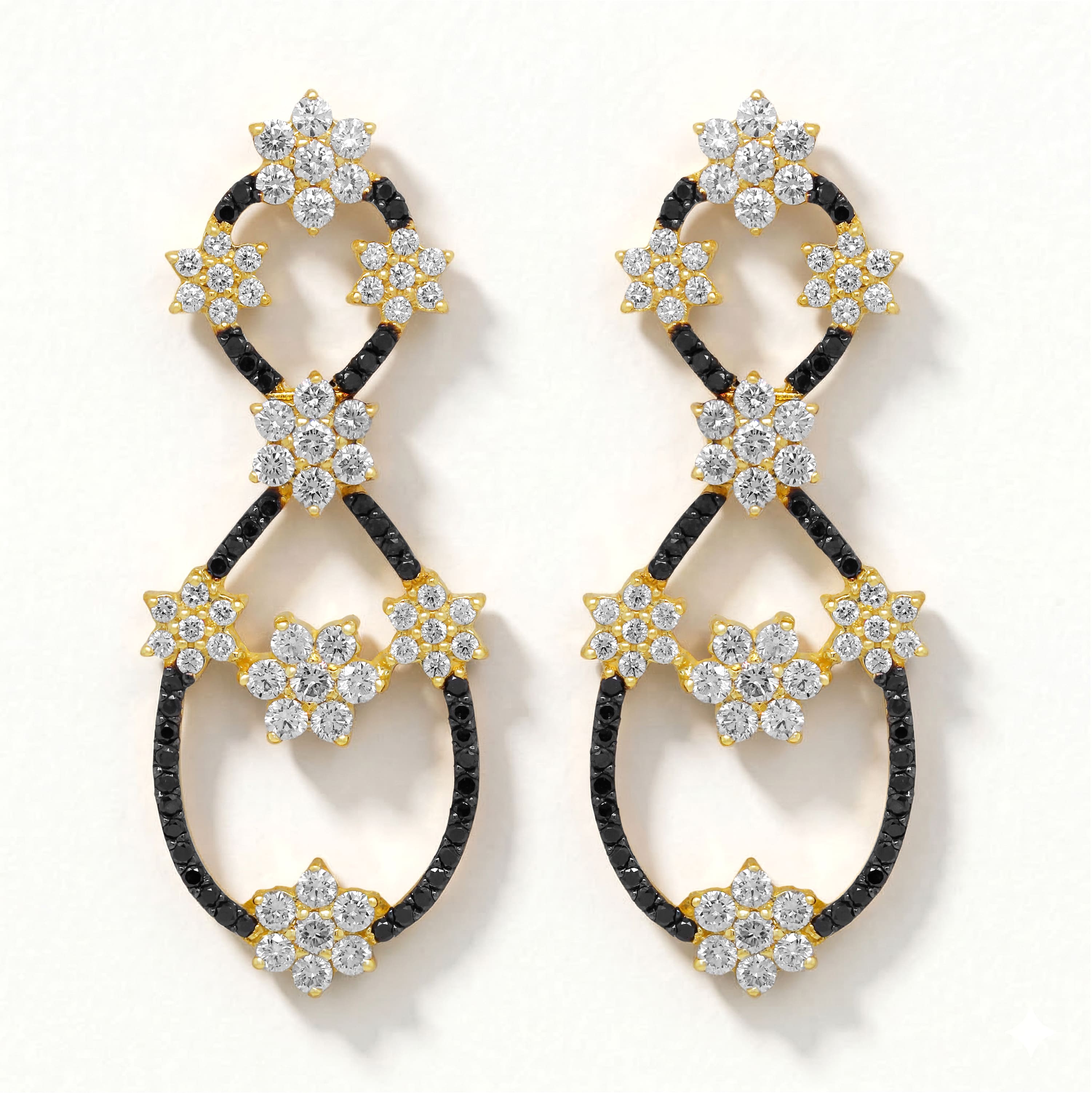 • 18K Gold Black and White Diamond Figure 8 Drop Earrings