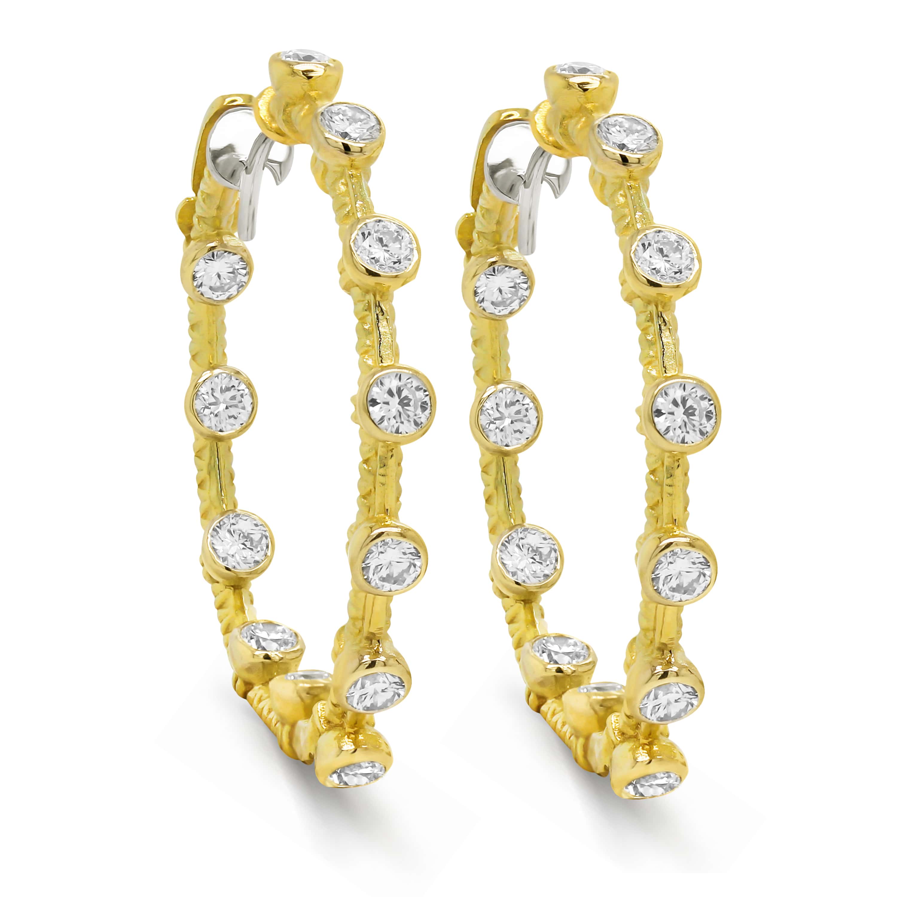 18K GOLD AND BEZEL SET DIAMONDS INSIDE OUT HOOP EARRINGS