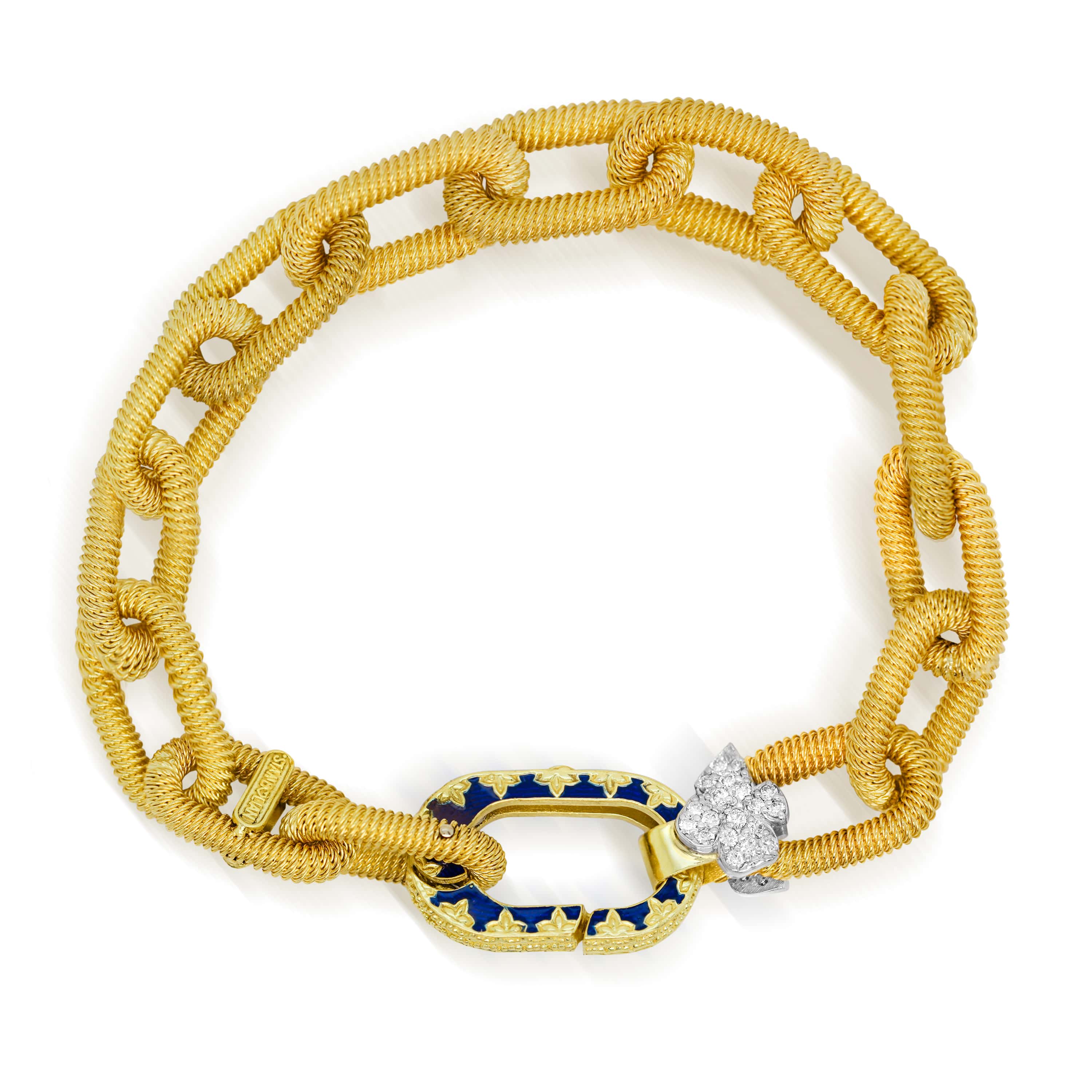 18K GOLD DIAMONDS COBALT BLUE ENAMEL LINK BRACELET