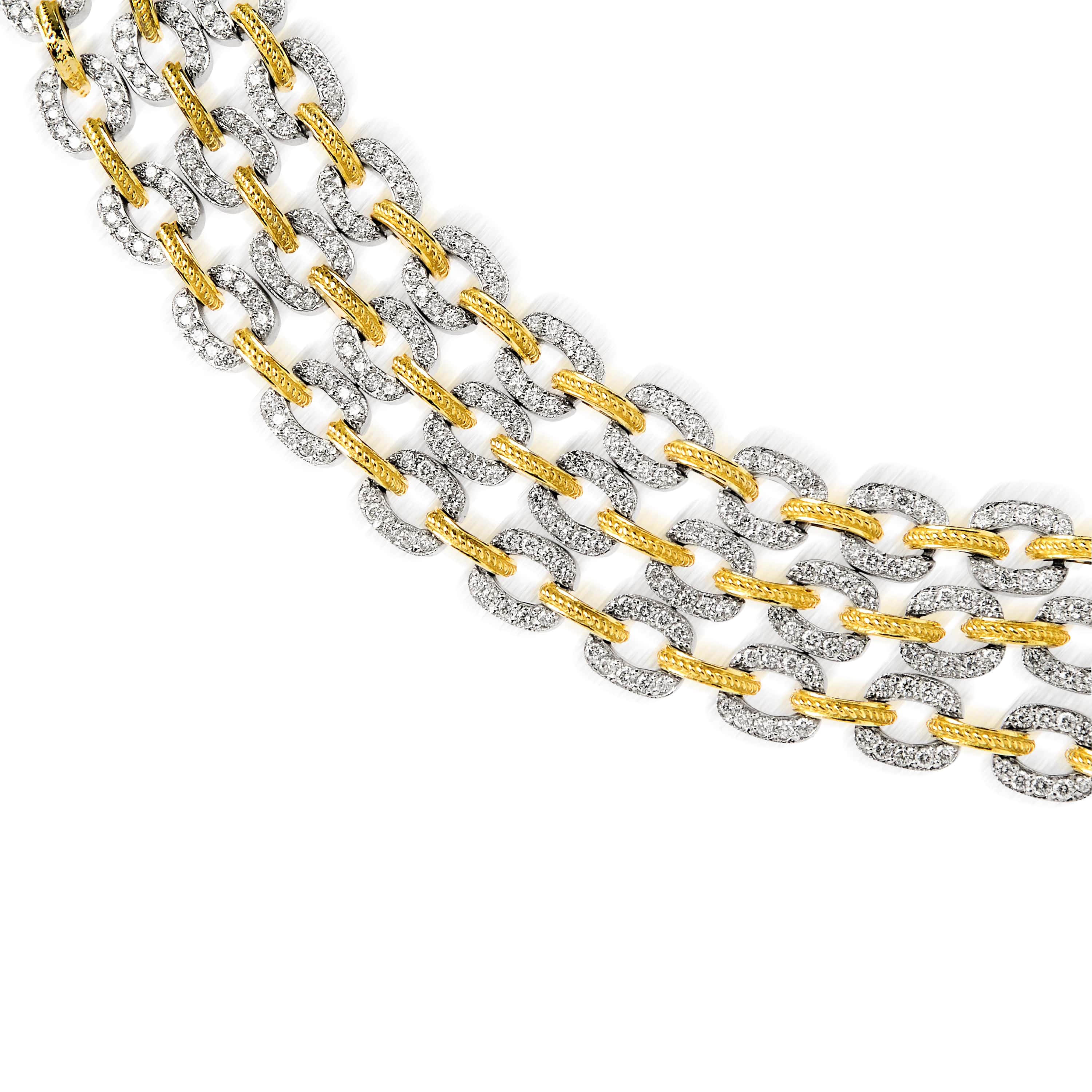 18K TWO-TONE GOLD DIAMONDS TRIPLE LINK BRACELET