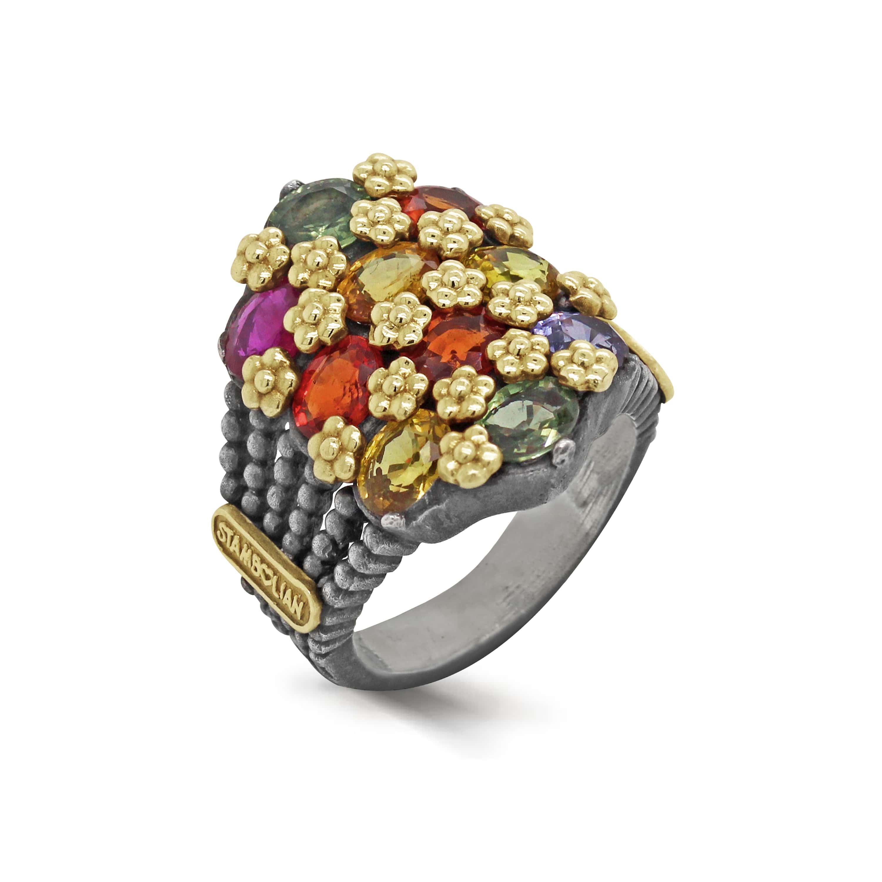 AGED SILVER 18K GOLD MULTI-COLOR SAPPHIRE RING