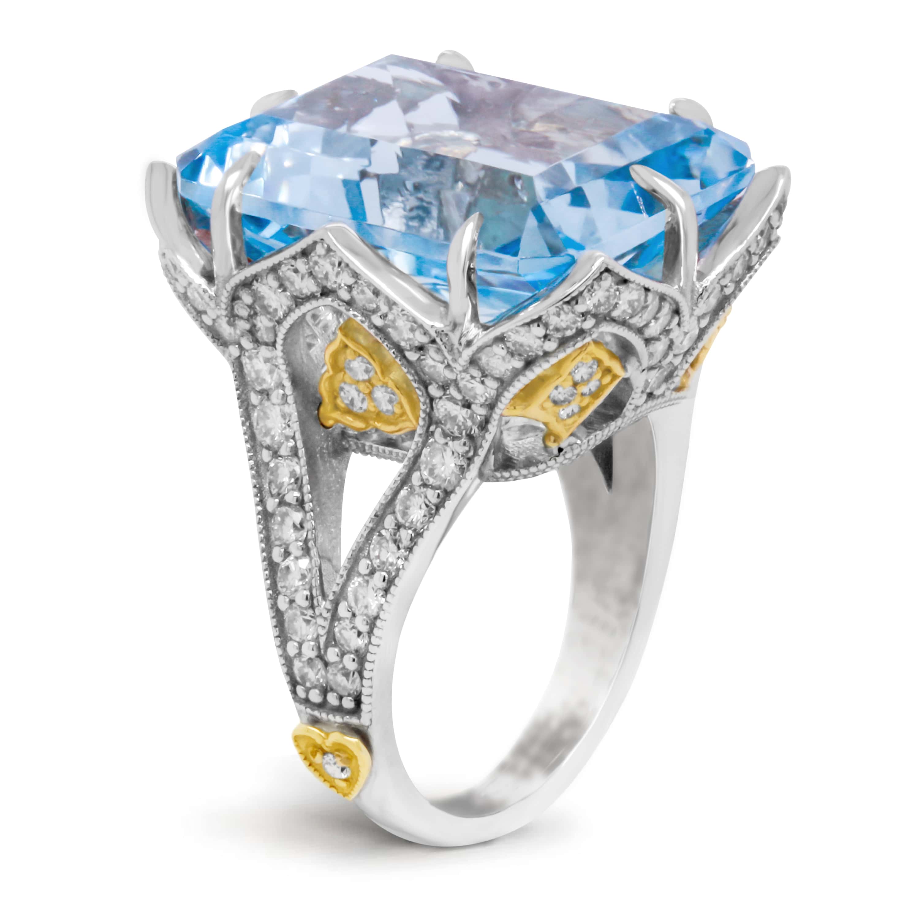 AQUAMARINE AND DIAMONDS 18K TWO TONE GOLD RING
