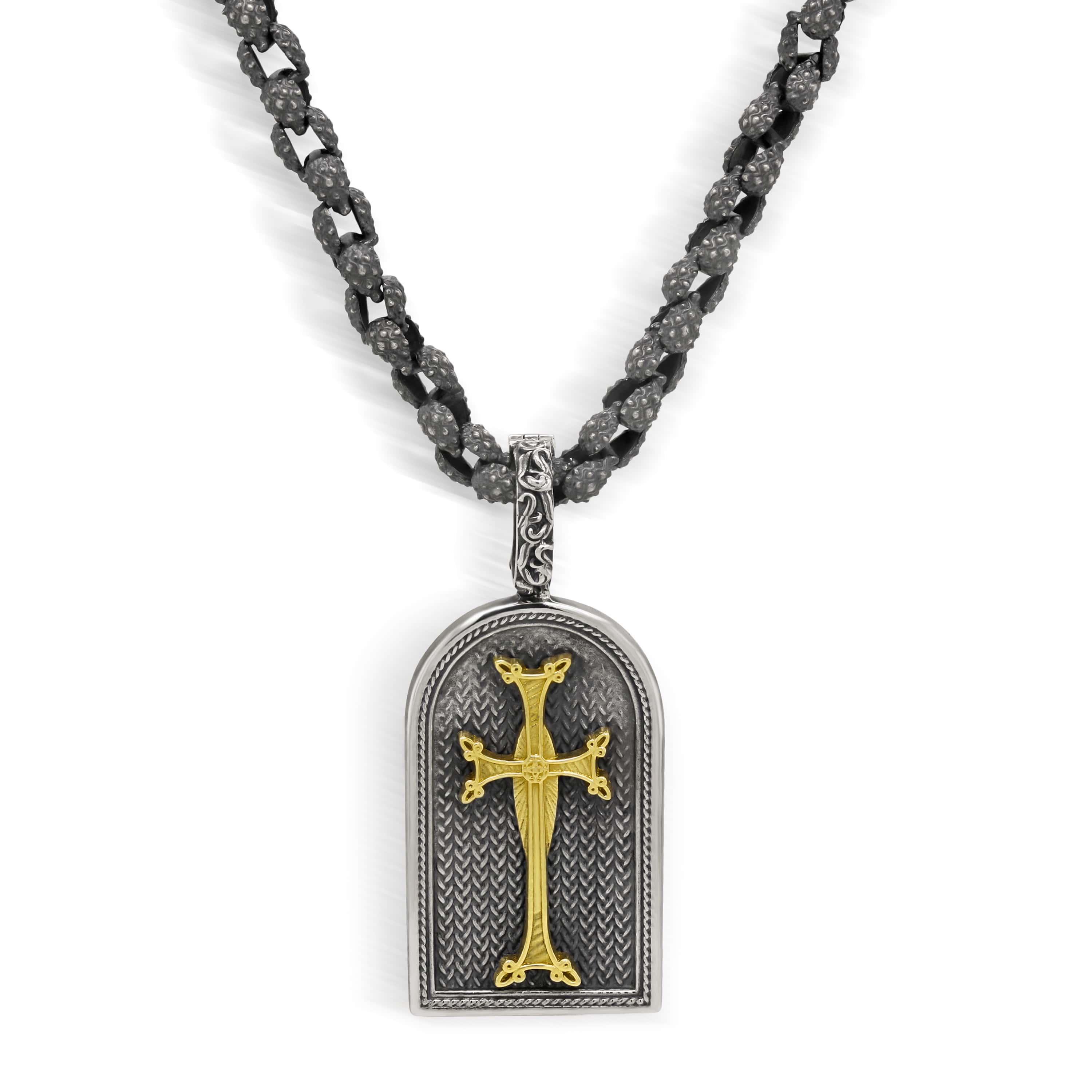 • “Beginnings” Aged Silver & 18K Gold Armenian Cross “Khachkar” Enhancer Pendant Necklace