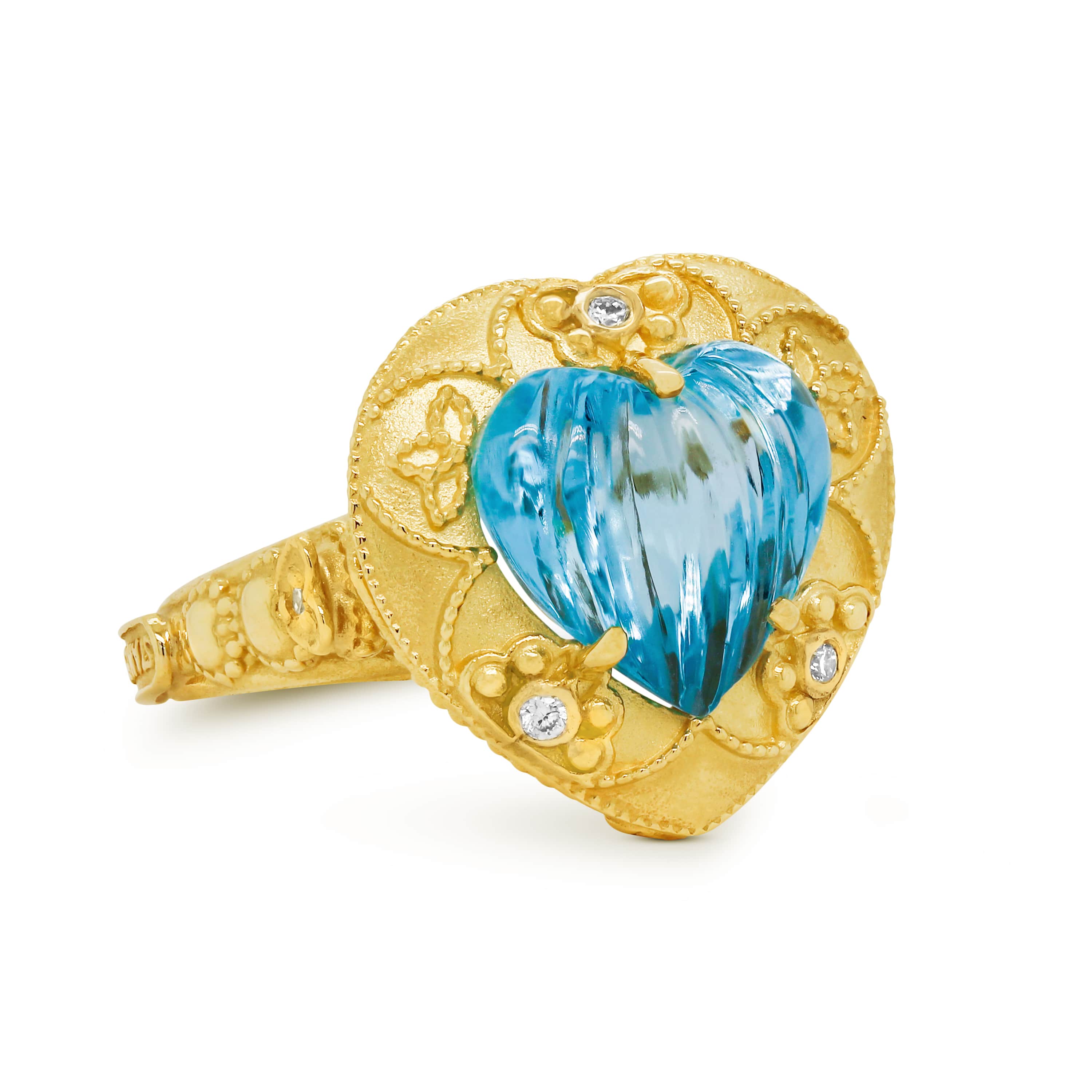 CANDY HEART BLUE TOPAZ 18K GOLD DIAMONDS RING