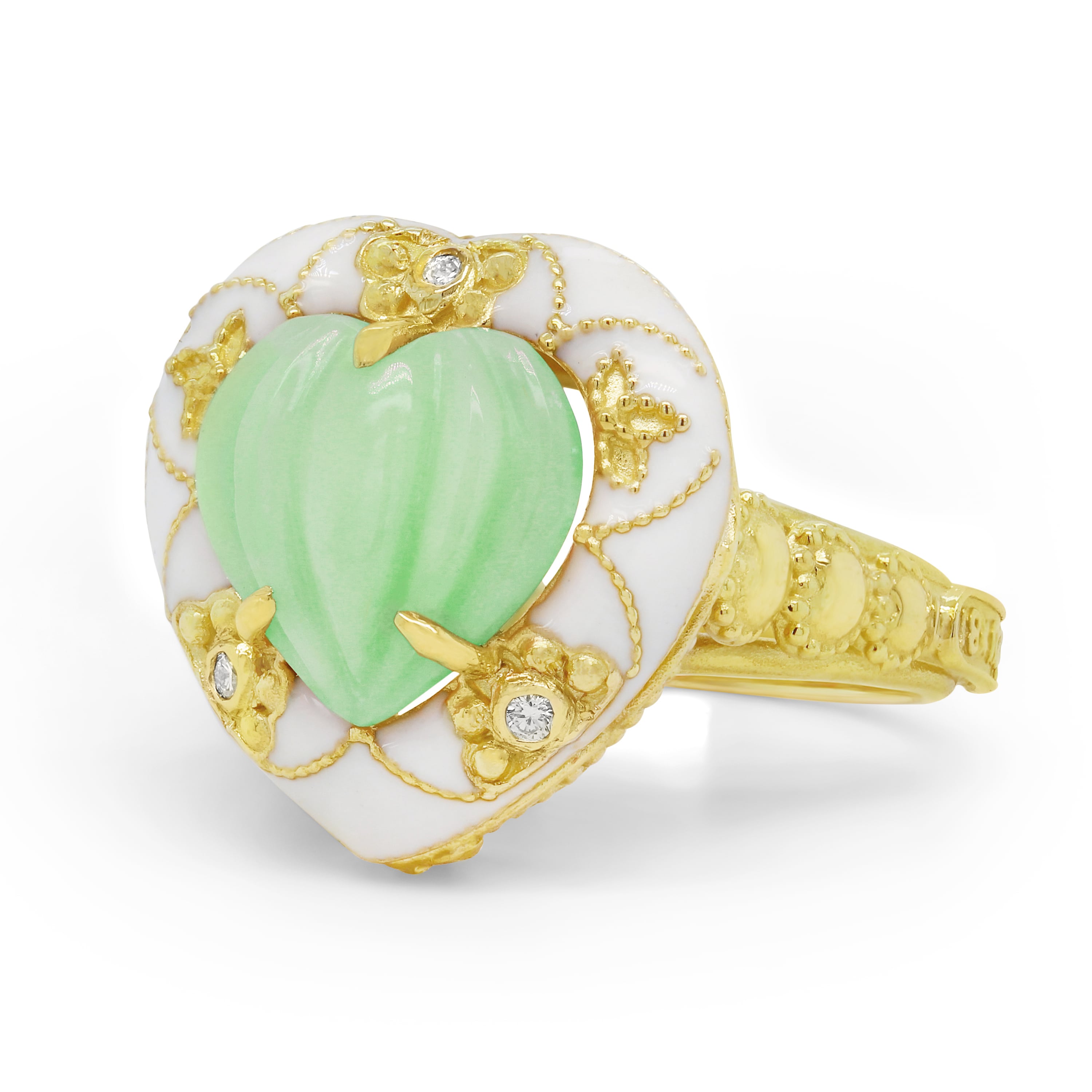 CANDY HEART MINT CHRYSOPRASE WHITE ENAMEL RING