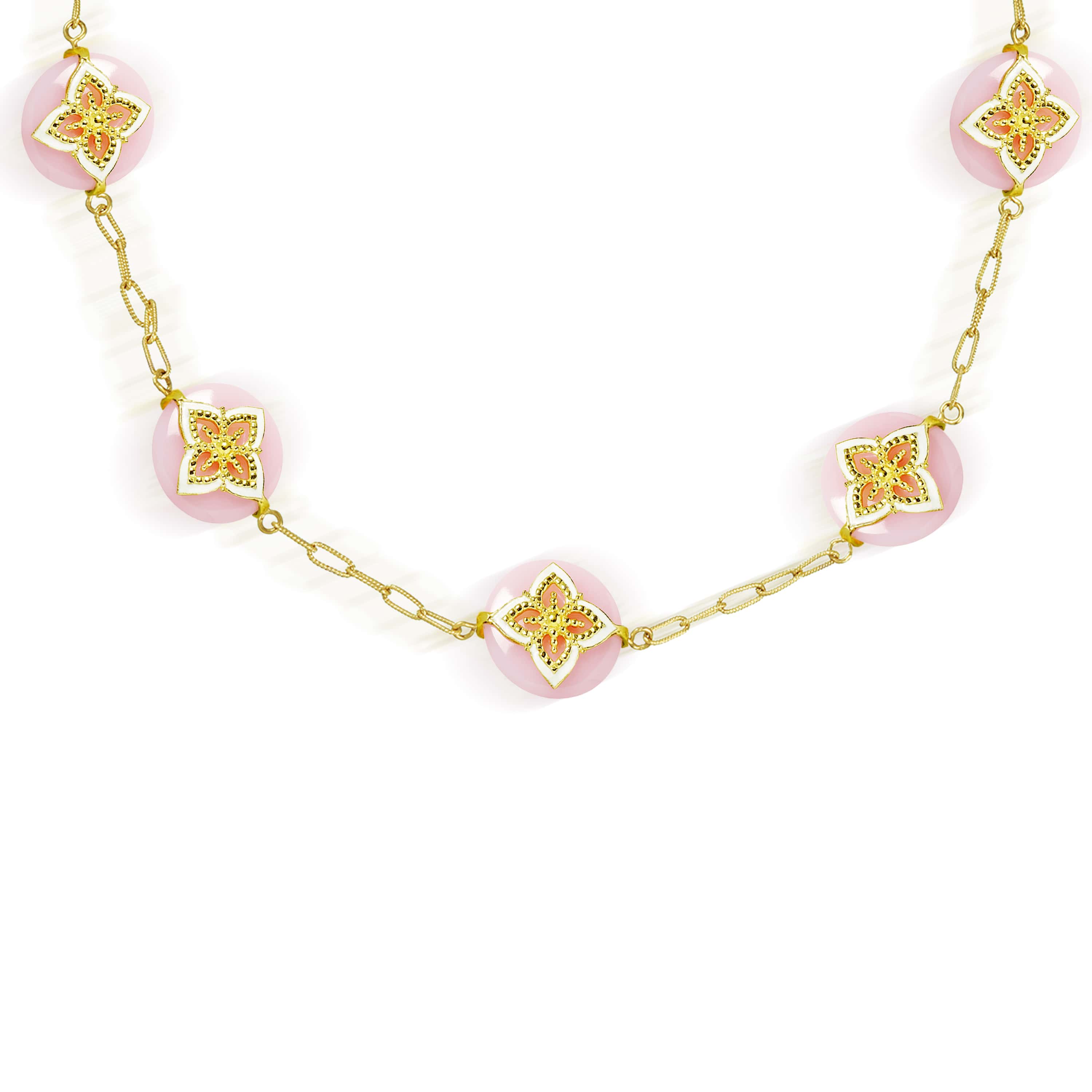 CANDY PINK OPAL WHITE ENAMEL 18K GOLD STATION NECKLACE
