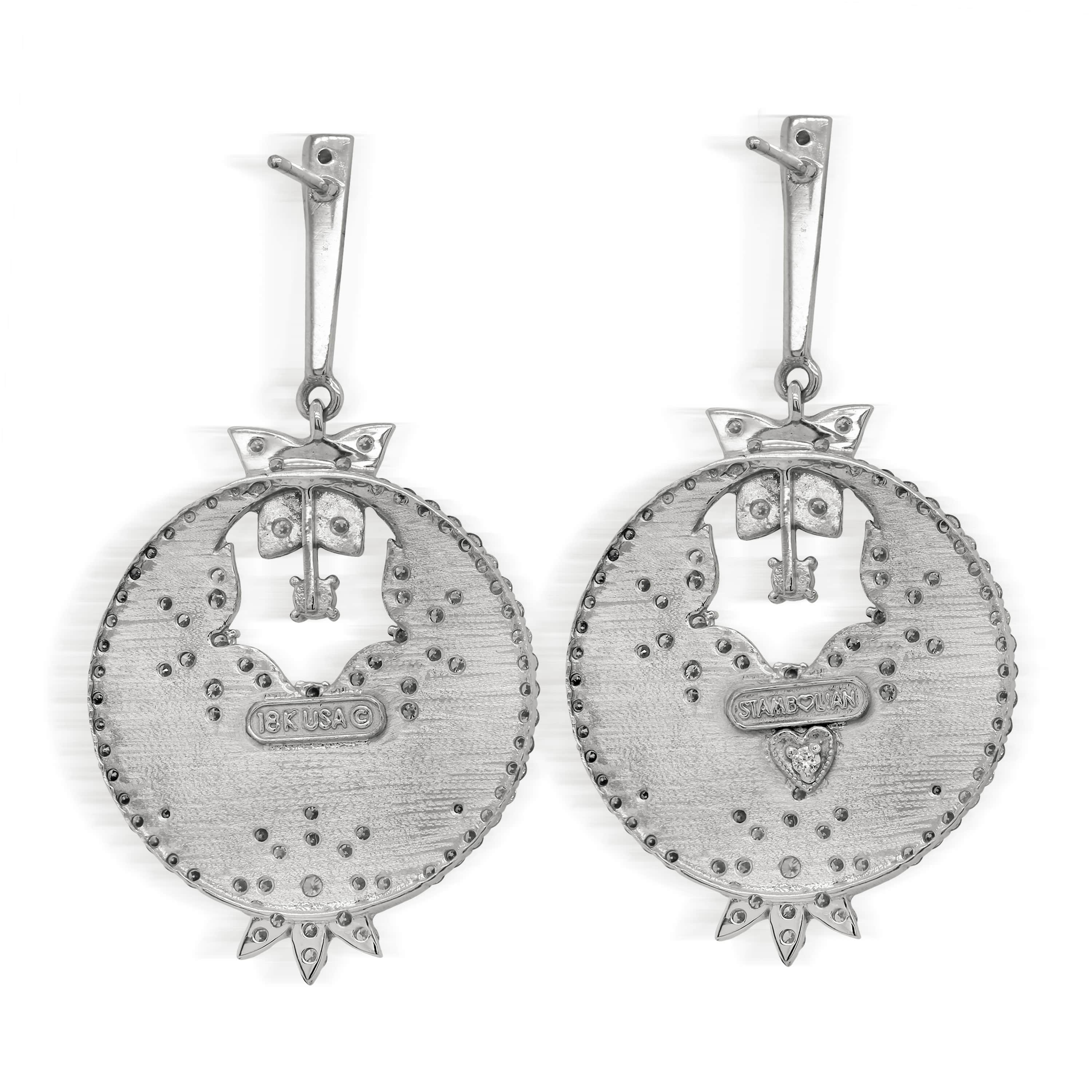 • "Colors of Life" 18K White Gold and Diamond Earrings with Cobalt Blue Enamel