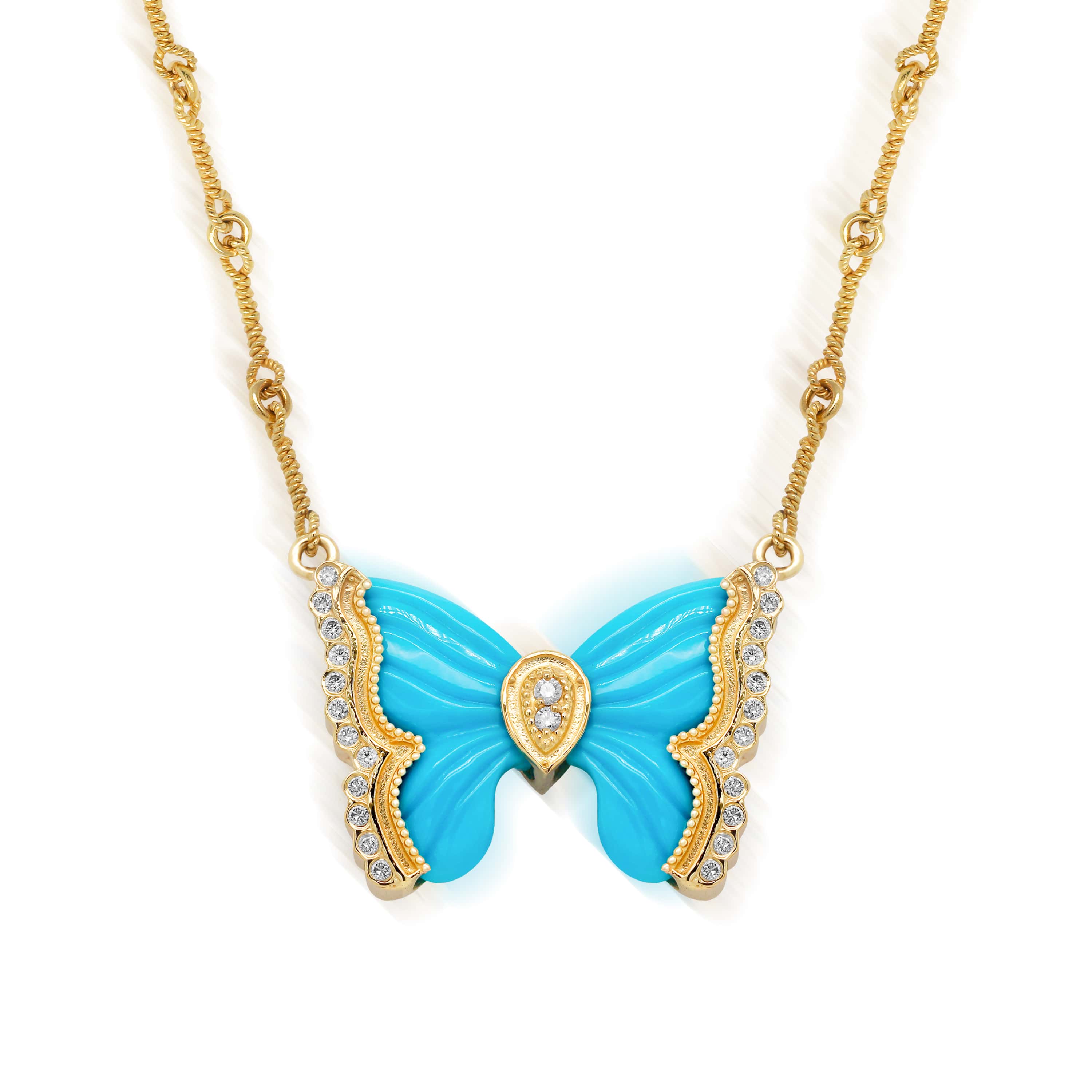 CANDY BUTTERFLY TURQUOISE DIAMONDS PENDANT NECKLACE