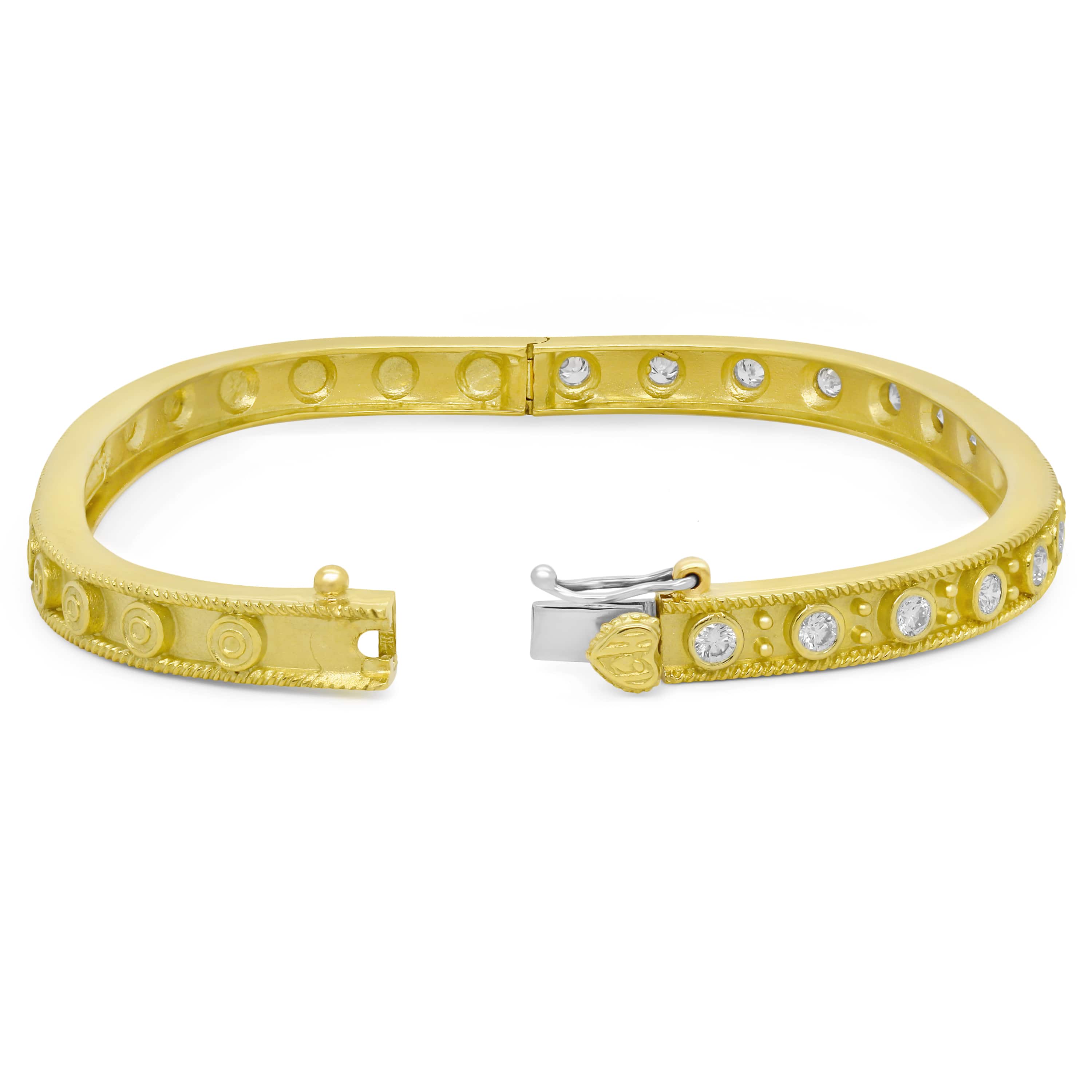 • "Happiness" 18K Gold Bangle Bracelet with Diamonds