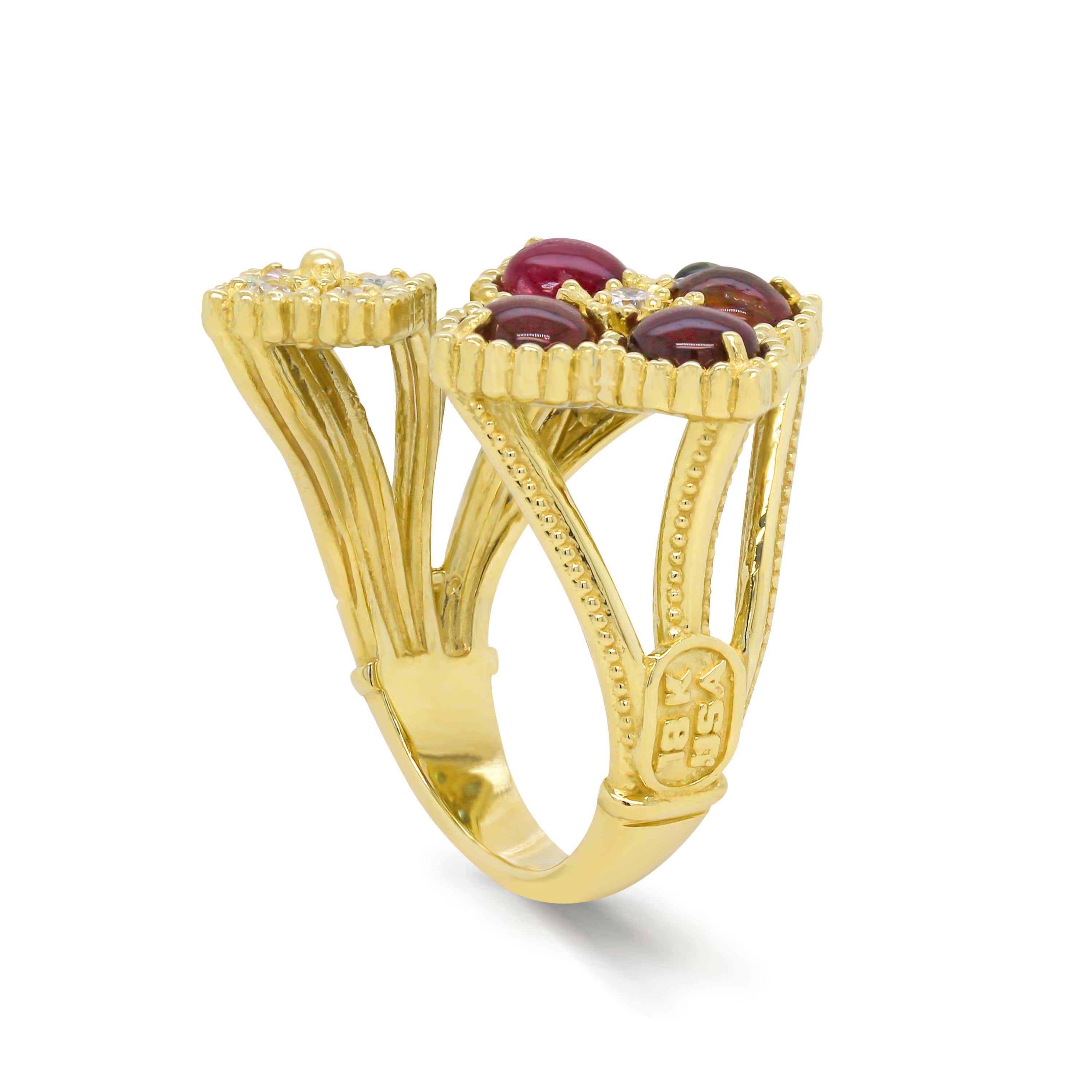 • "Happiness" 18K Gold Cluster Ring with Multi-color, Cabochon Tourmalines and Diamonds