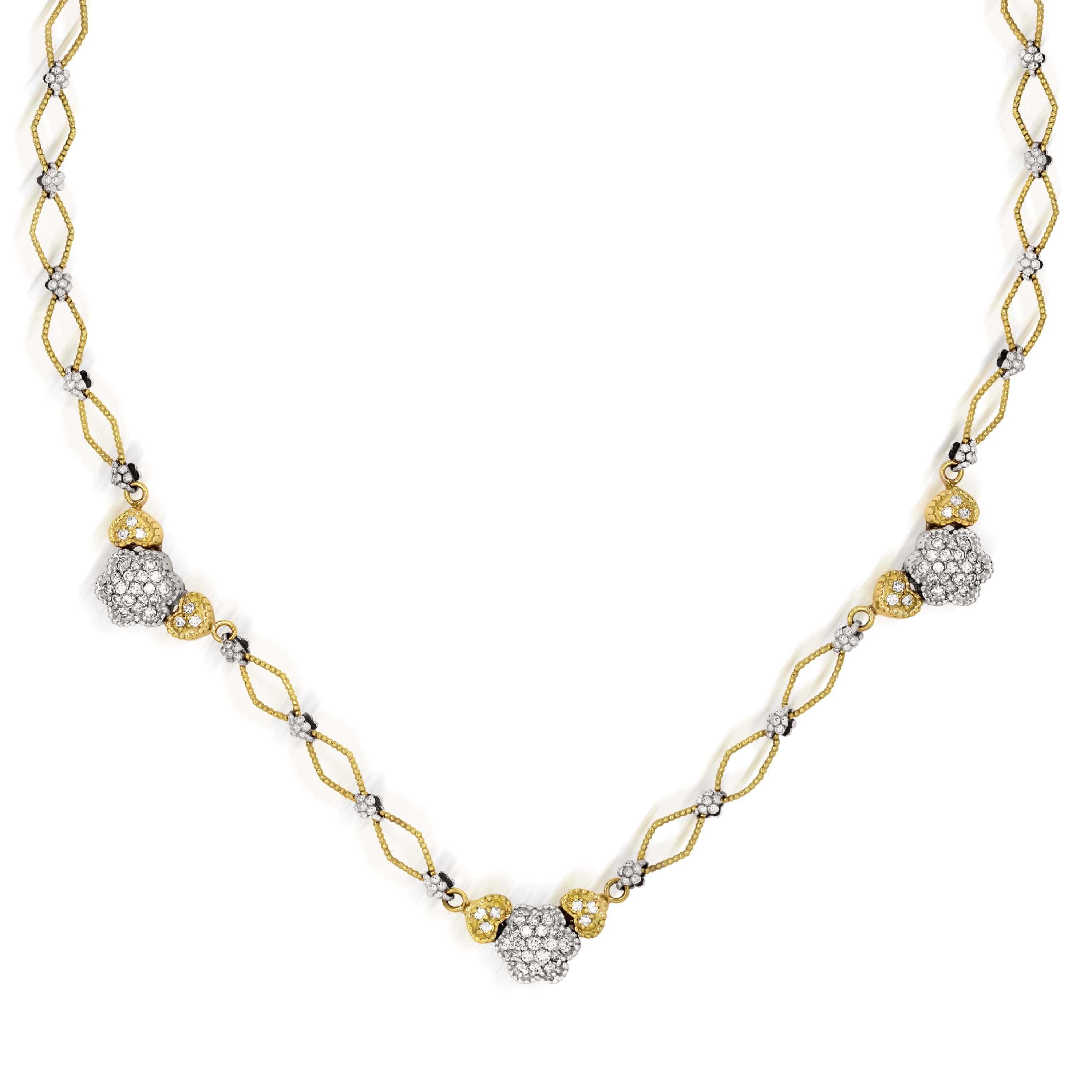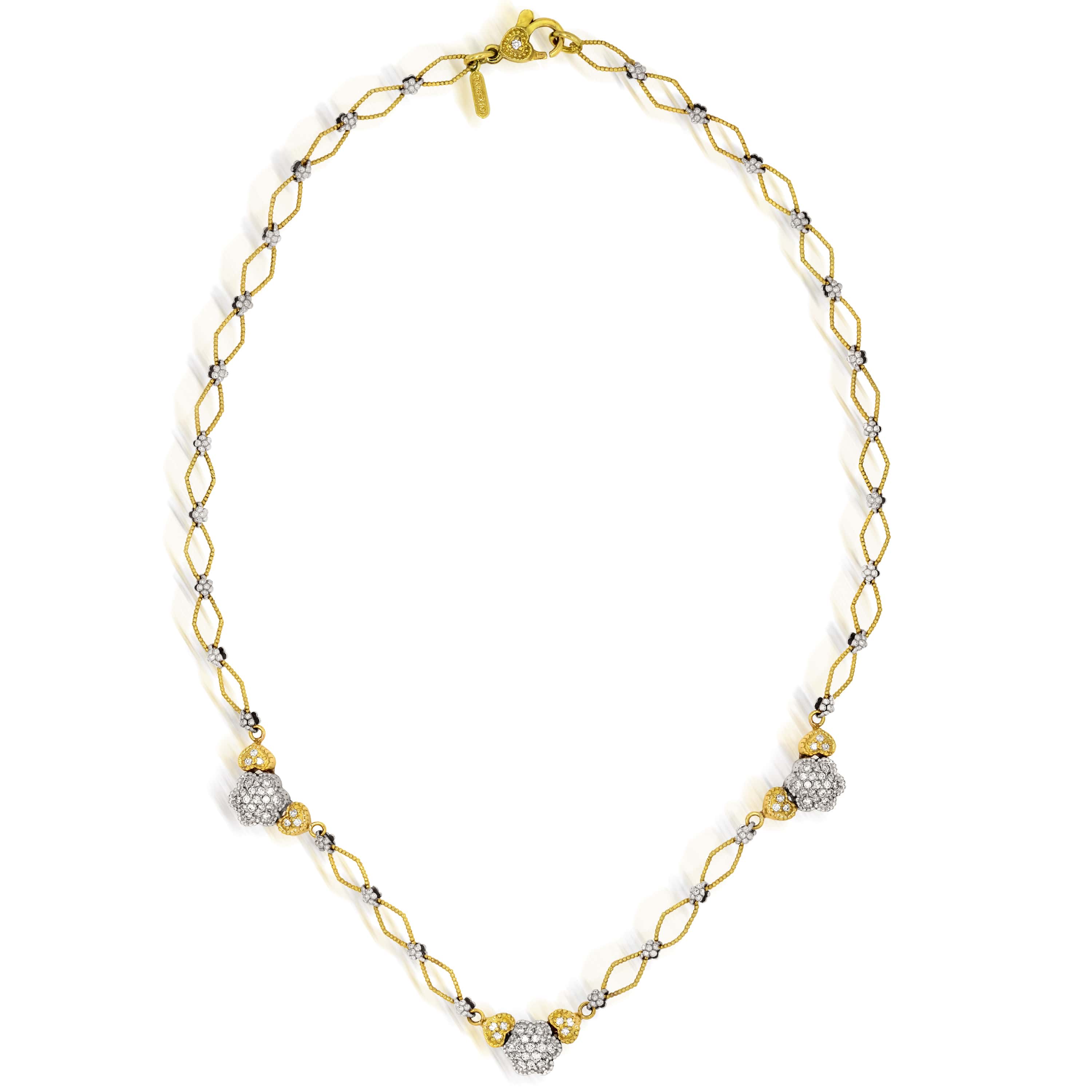 HAPPINESS 18K TWO-TONE GOLD AND DIAMONDS HEARTS AND FLOWERS STATION NECKLACE