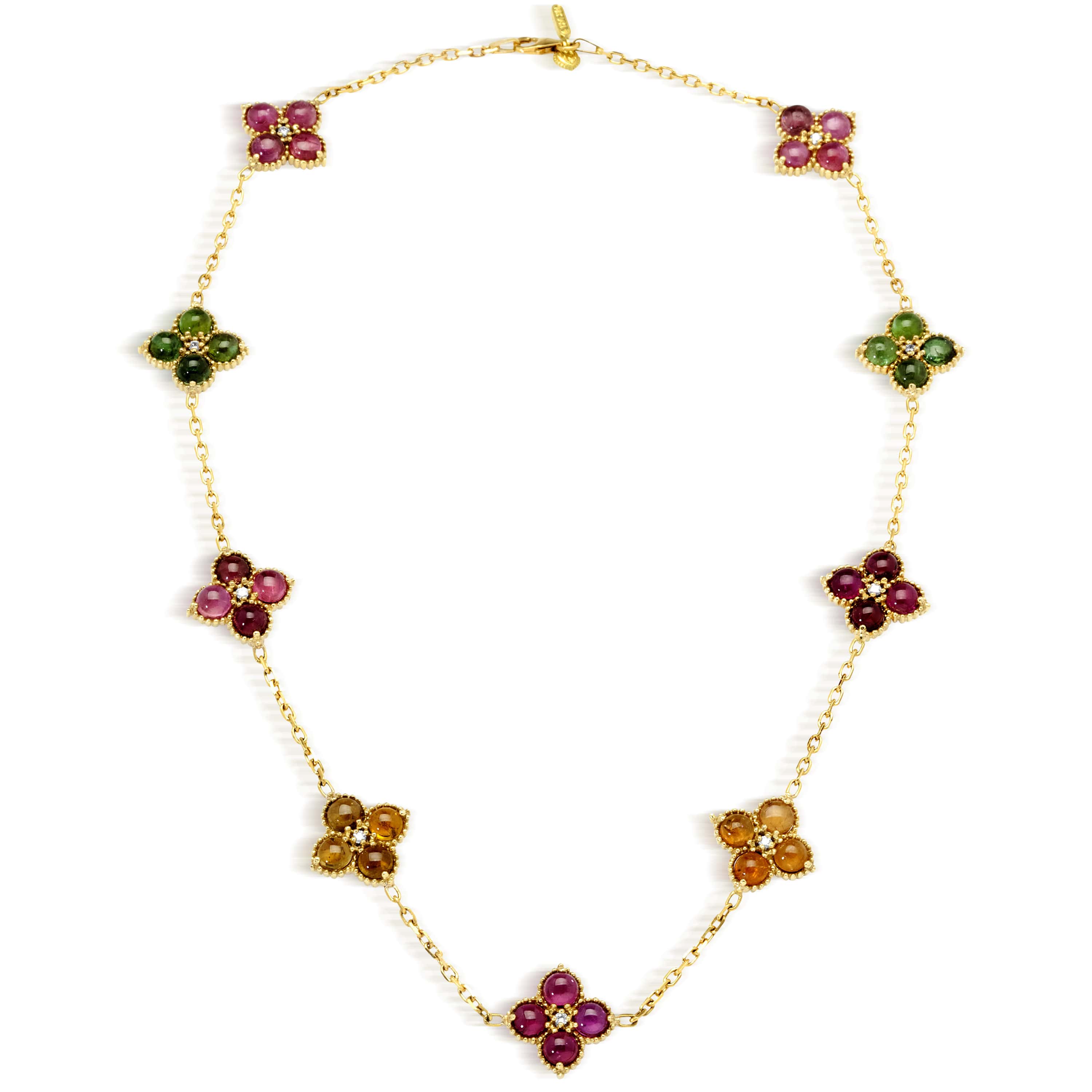 • "Happiness" 18K Gold, Diamonds and Cabochon, Multi-color Tourmalines Nine Flowers Double-Sided Necklace