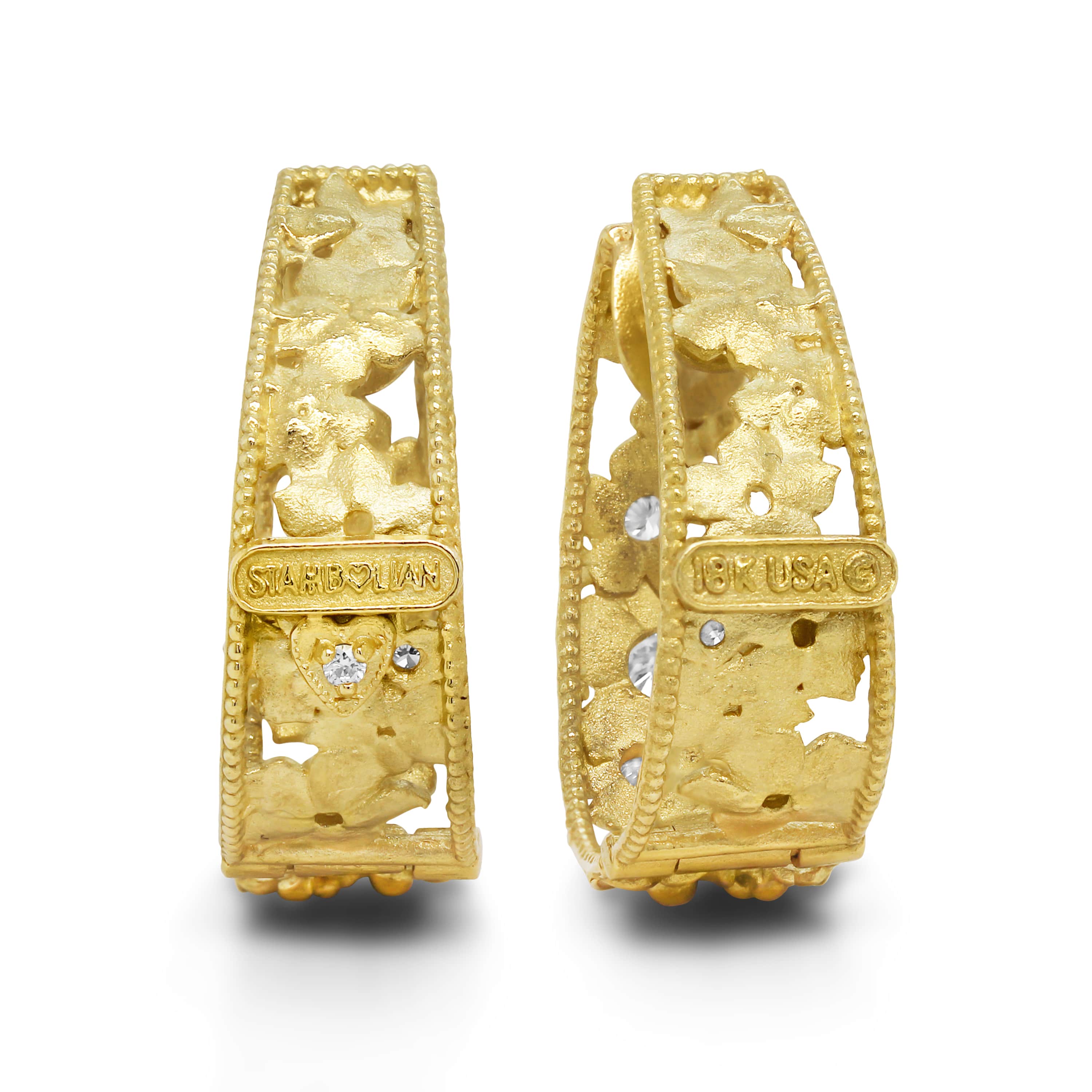 • "Mayflower" 18K Gold and Diamond Inside out Hoop Earrings