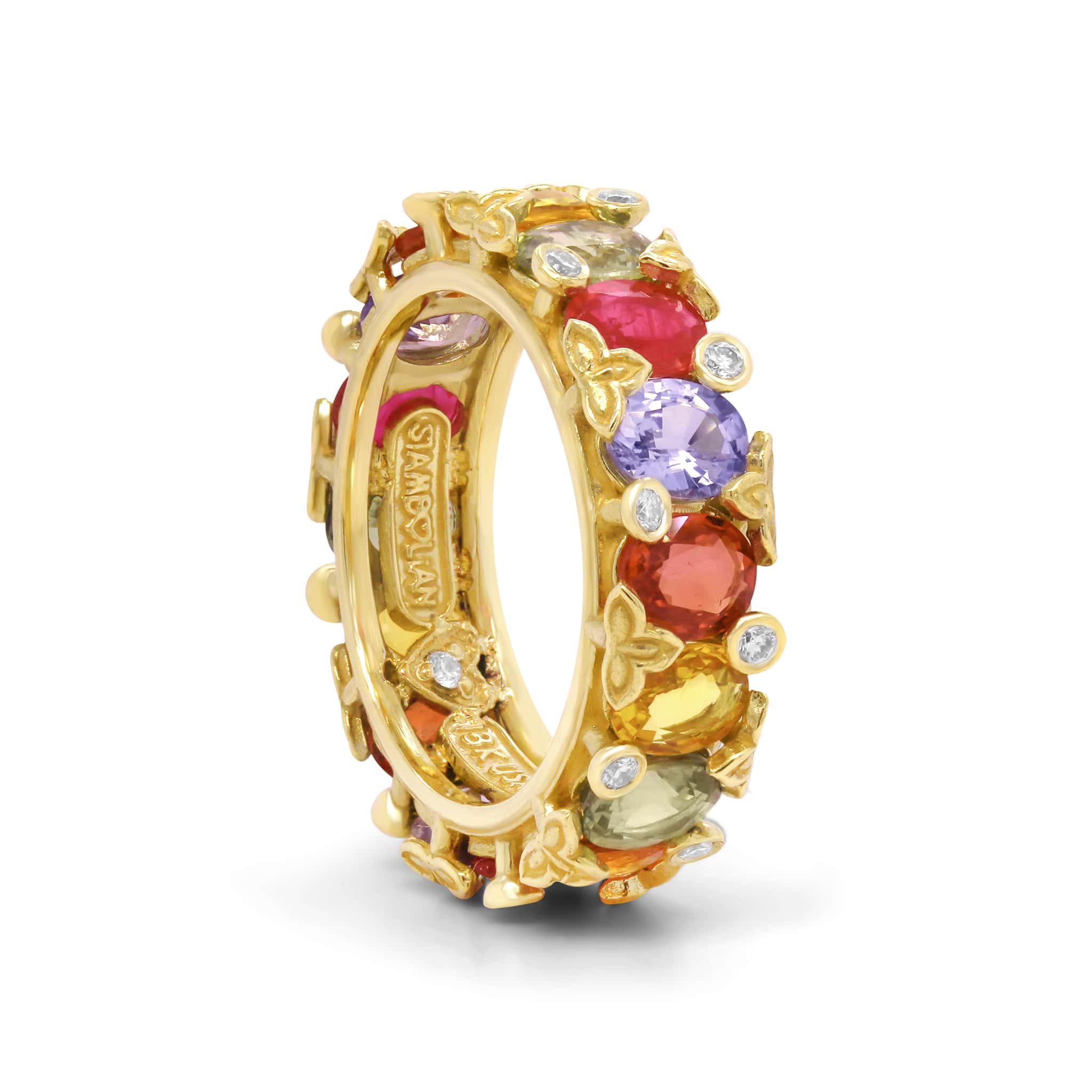 MULTI-COLOR SAPPHIRE 18K GOLD AND DIAMOND BAND RING
