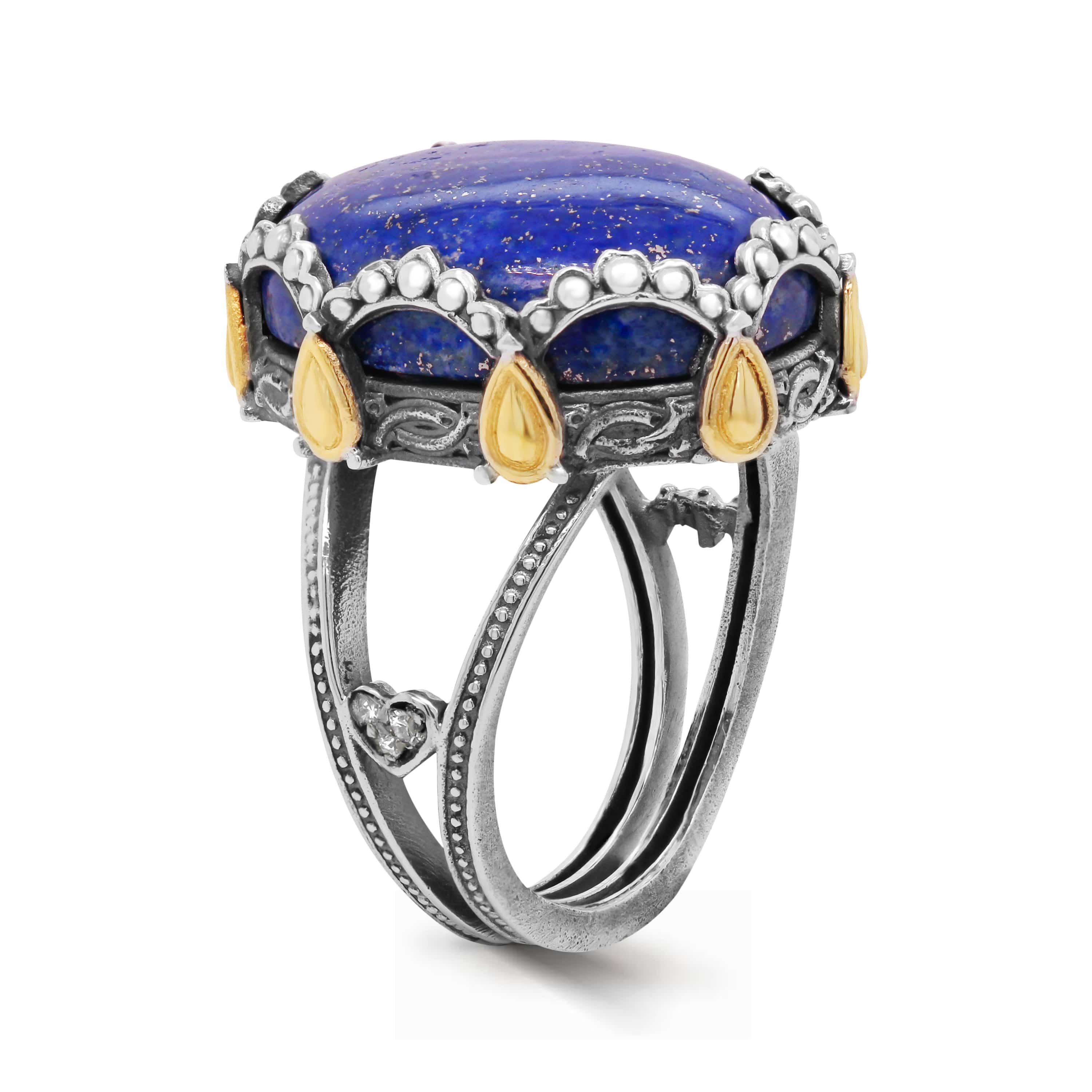 • "Princess Tiara" Aged Silver & 18K Gold Ring with Lapis Lazuli