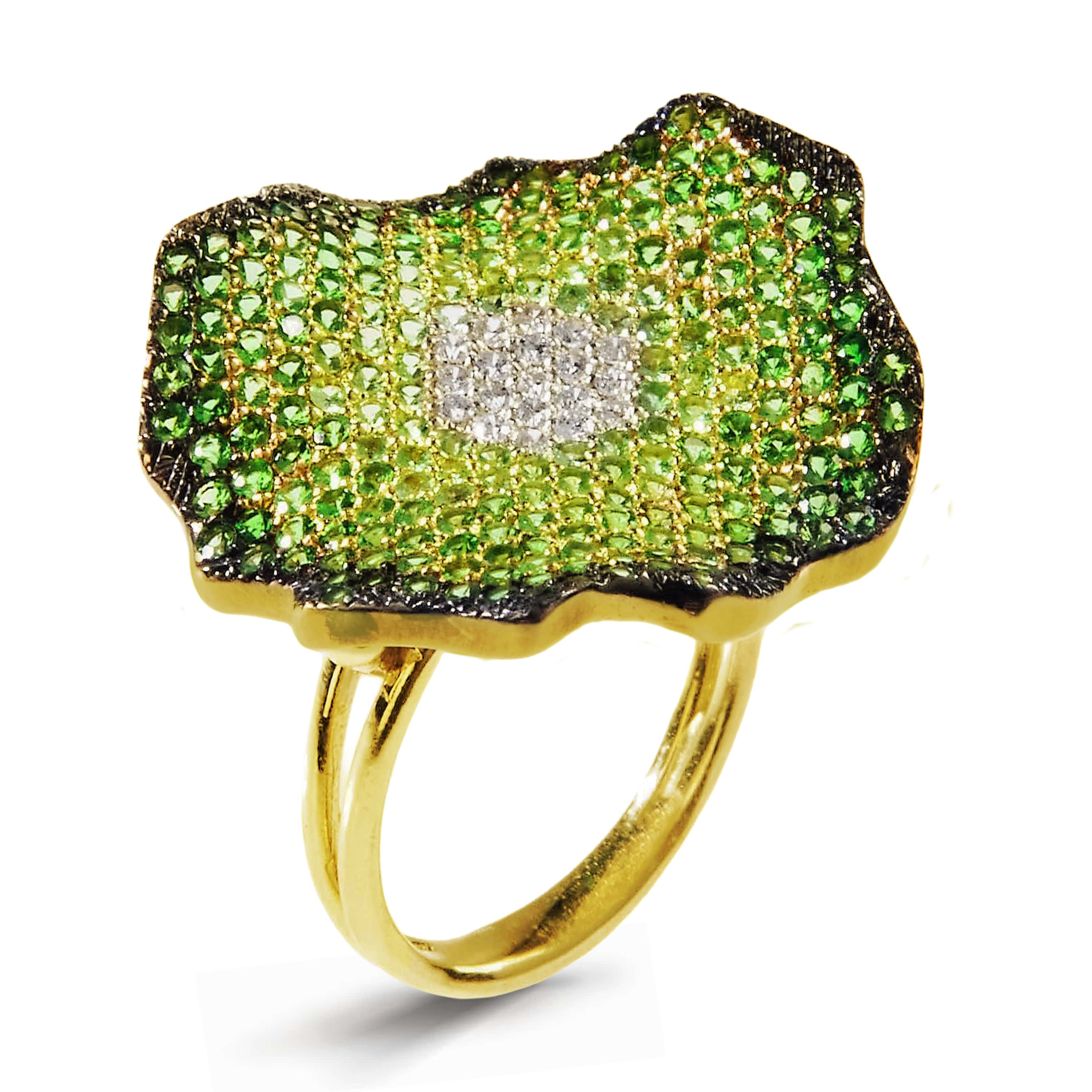 SHADED TSAVORITE GARNETS DIAMONDS 18K GOLD RING