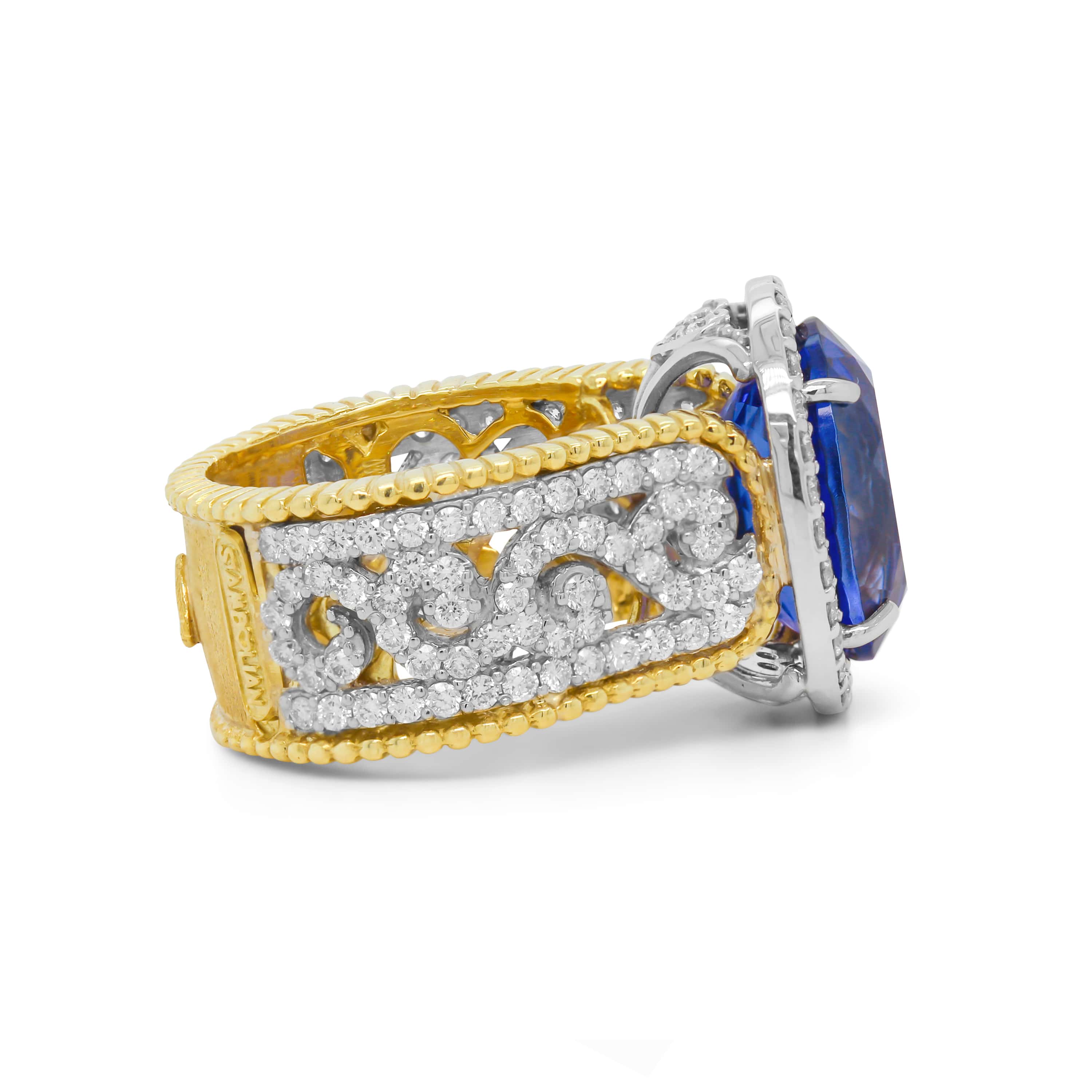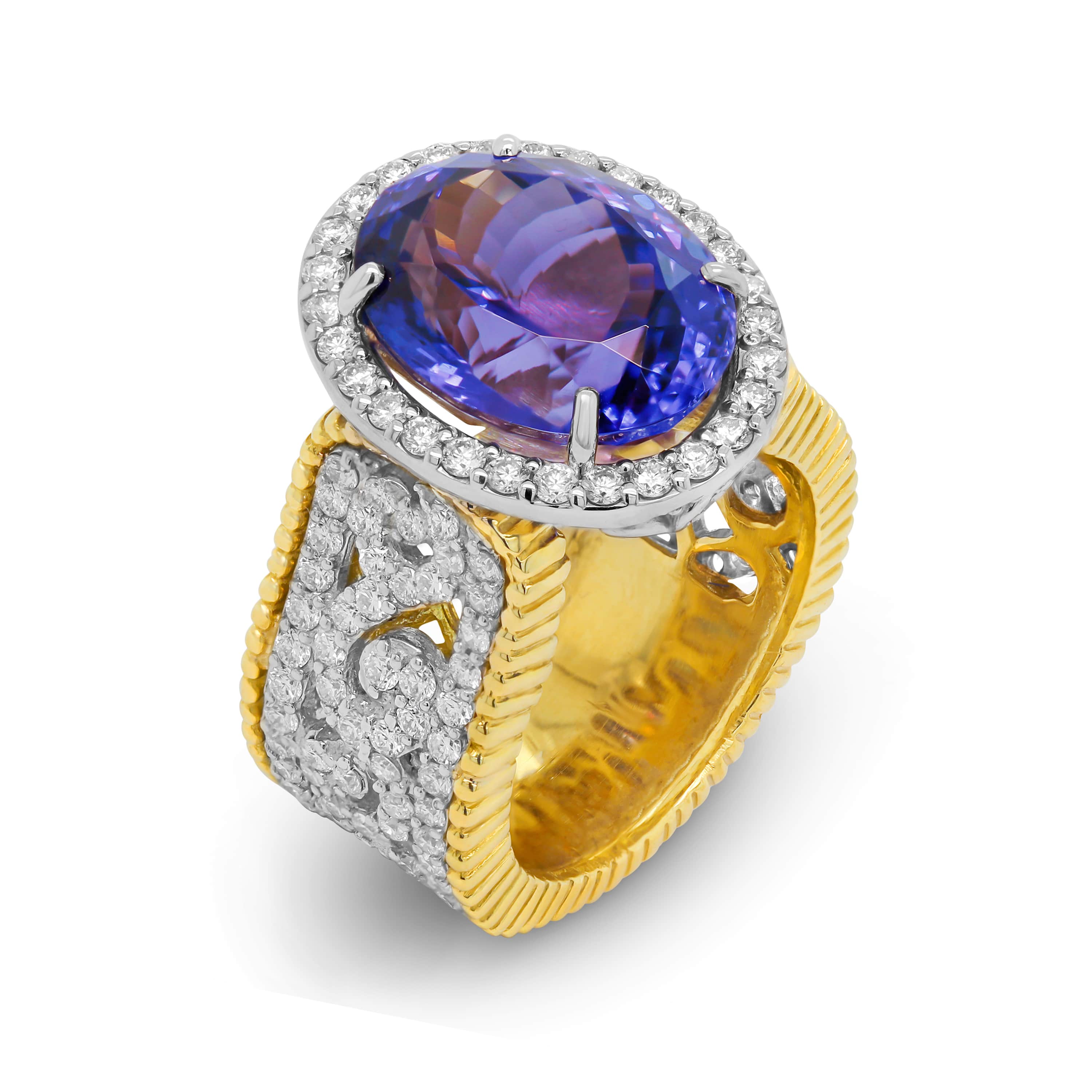 TANZANITE 18K TWO-TONE GOLD AND DIAMONDS RING