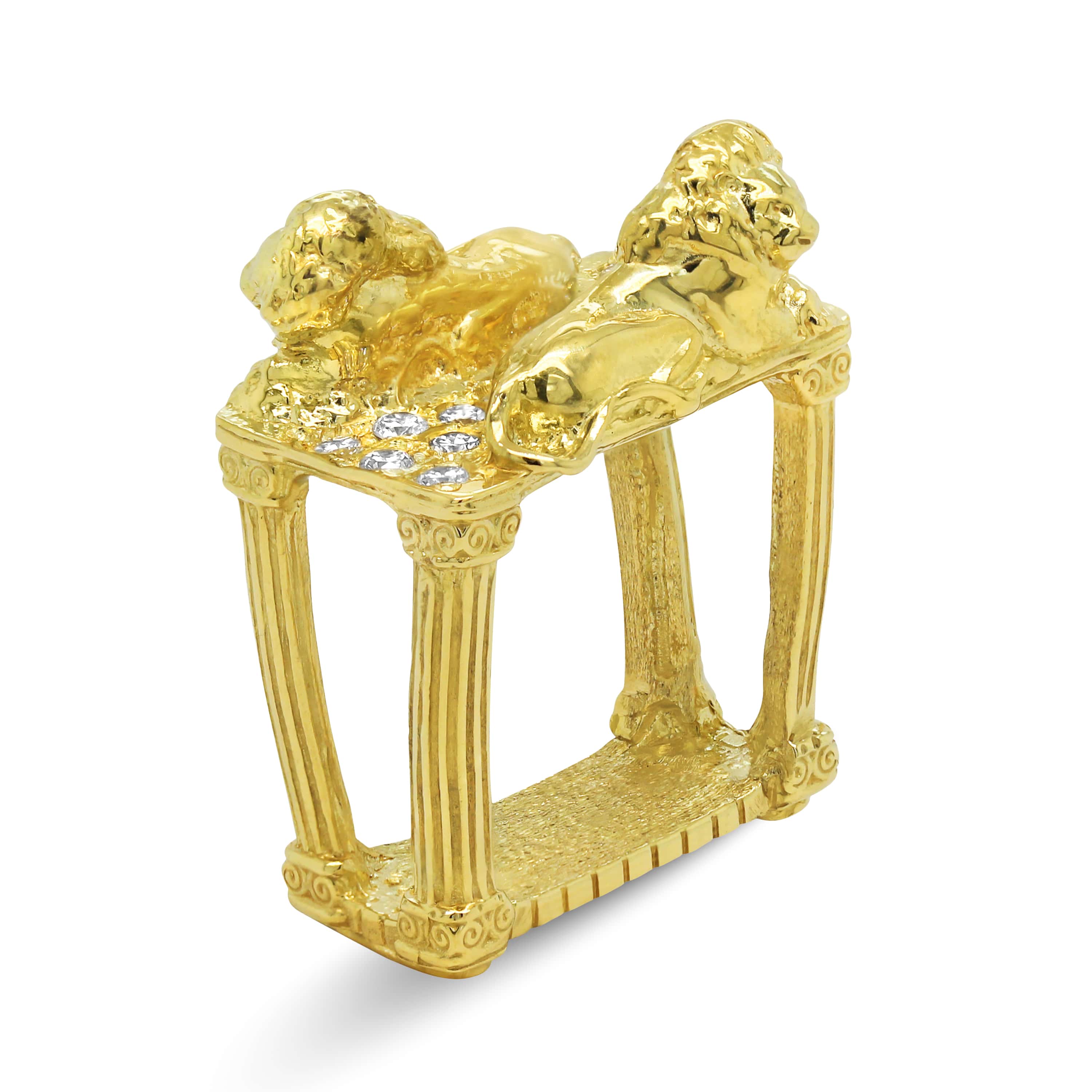 • "Two Kings" 18K Gold and Diamonds Ring with 2 Lions